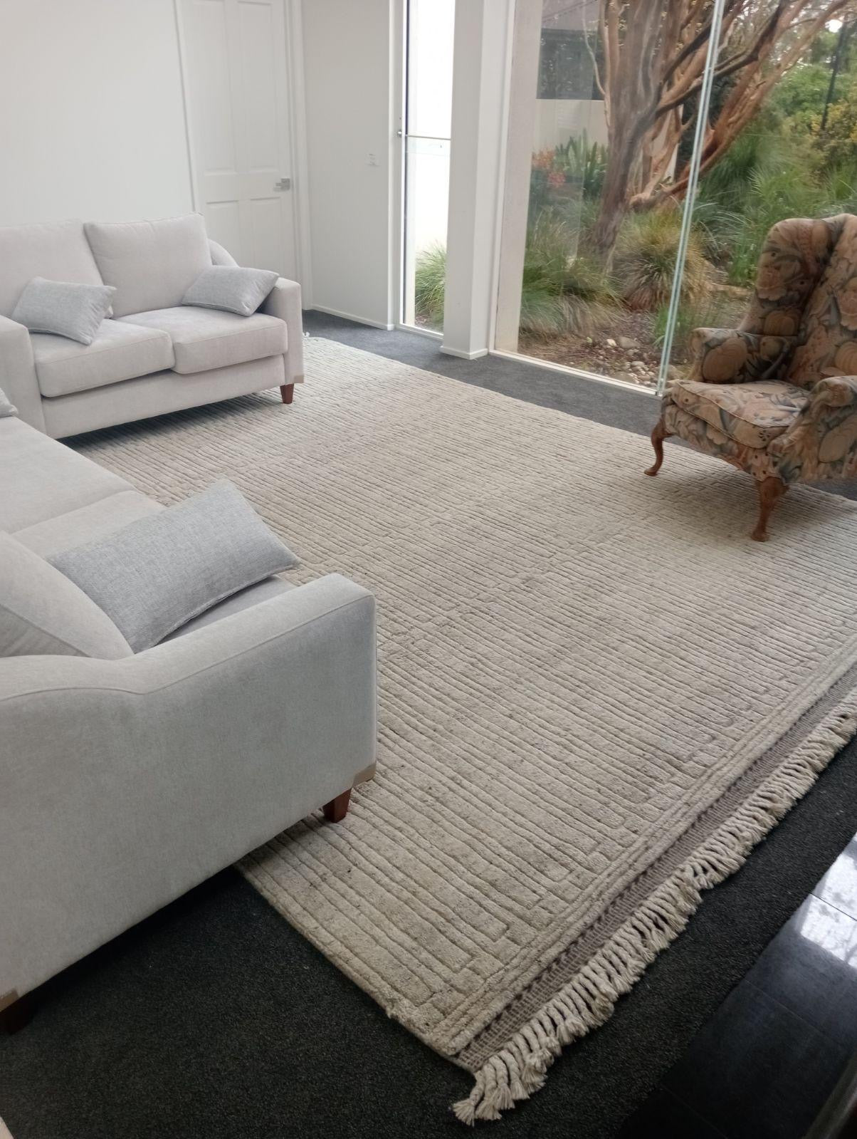 Rooted in the traditions of the renowned Berber tribes, our rugs are hand-knotted with a unique blend of organic New Zealand Wool. Echoing Morocco's deep heritage, these pieces offer immense comfort and elegance. The distinct fringe detailing sets them apart, ensuring they blend both history and contemporary style