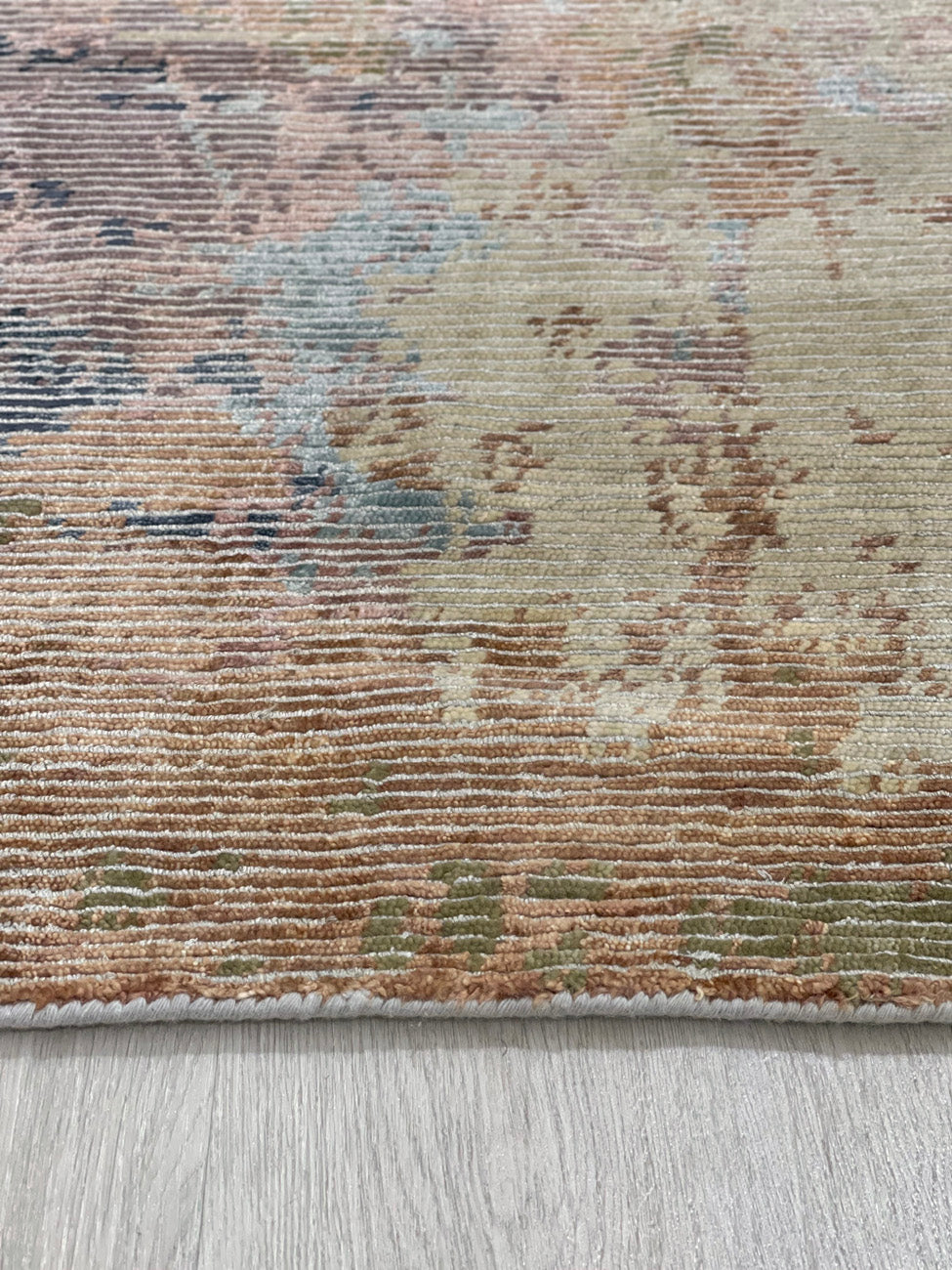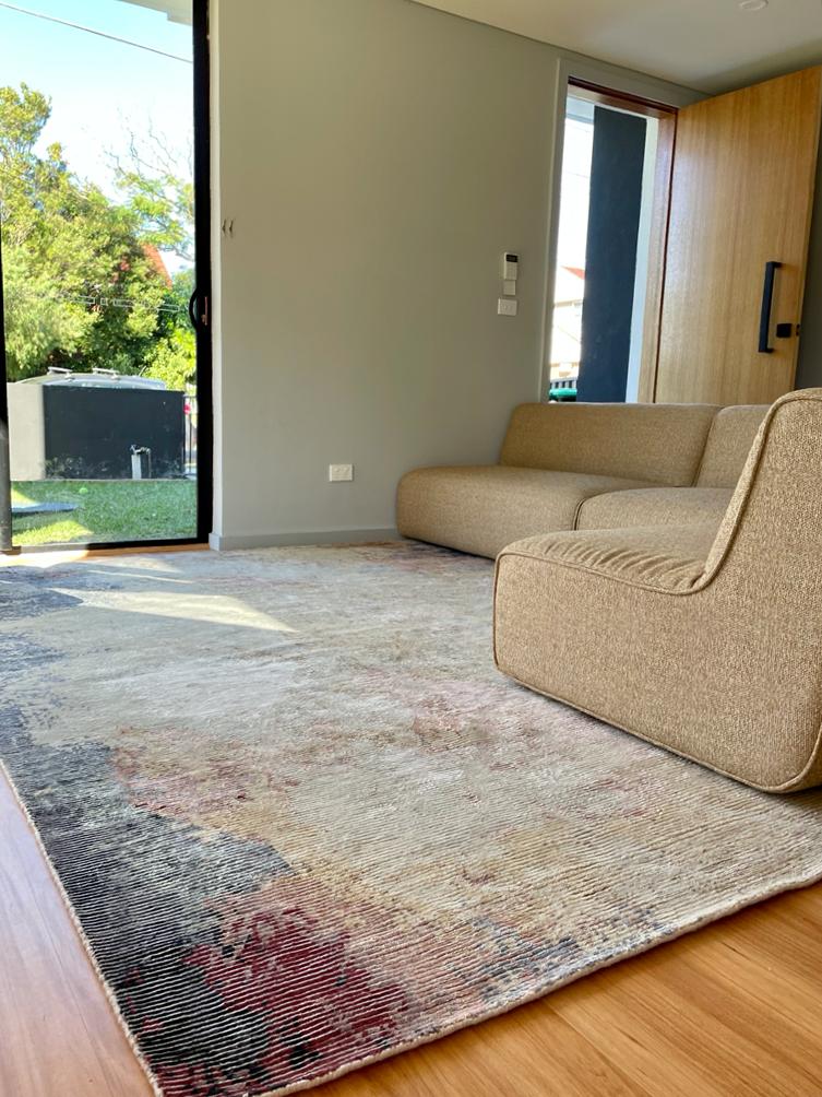 Skillfully handwoven using wool and bamboo silk, our Oasis Rug features a tactile interplay of loop and cut piles. Designed in-house, its tones mirror Australia's native flora, blending artistry and modern elegance for Australian homes. A true touch of nature's charm.