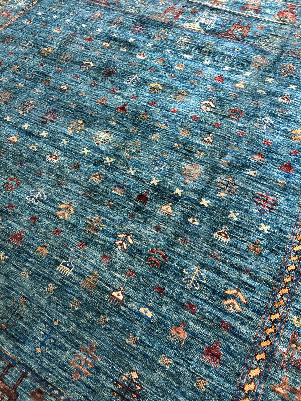 Expertly Handknotted by the Uzbek people of North West Afghanistan, our Shabargan rugs are rich tapestries of history and skill. Dating back to the late 16th century, these artisans imbue each piece with vibrant colors and detailed animal motifs, all dyed using traditional vegetable matter.