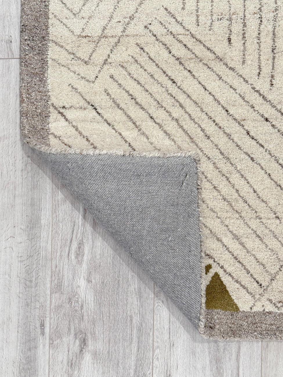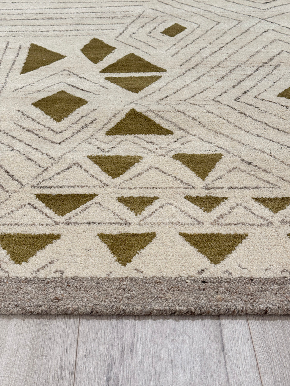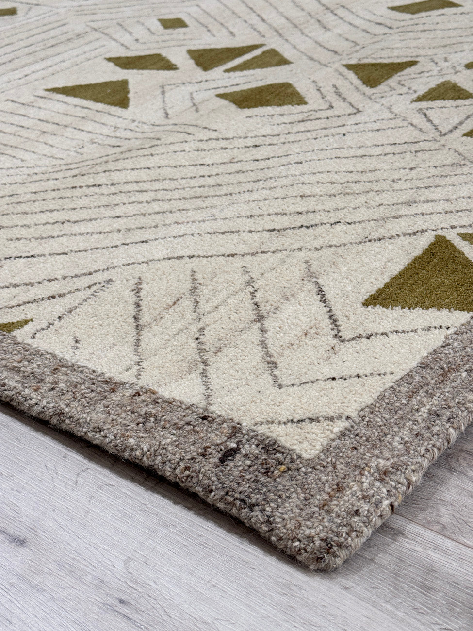 Our Mersey Rug, handtufted from New Zealand wool, blends tribal inspiration with refined texture. A soft cut pile centre is framed by a loop pile border, adding gentle contrast and tactile depth. In earthy beige with olive accents, Mersey brings warmth and quiet character to any relaxed interior.