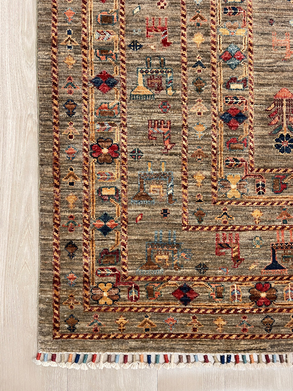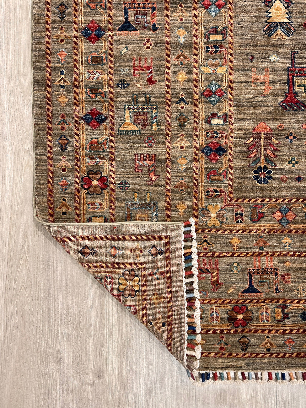 Expertly Handknotted by the Uzbek people of North West Afghanistan, our Shabargan rugs are rich tapestries of history and skill. Dating back to the late 16th century, these artisans imbue each piece with vibrant colors and detailed animal motifs, all dyed using traditional vegetable matter.