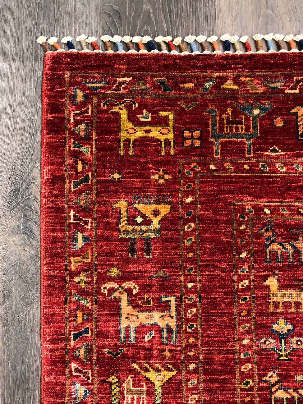 Expertly Handknotted by the Uzbek people of North West Afghanistan, our Shabargan rugs are rich tapestries of history and skill. Dating back to the late 16th century, these artisans imbue each piece with vibrant colors and detailed animal motifs, all dyed using traditional vegetable matter.